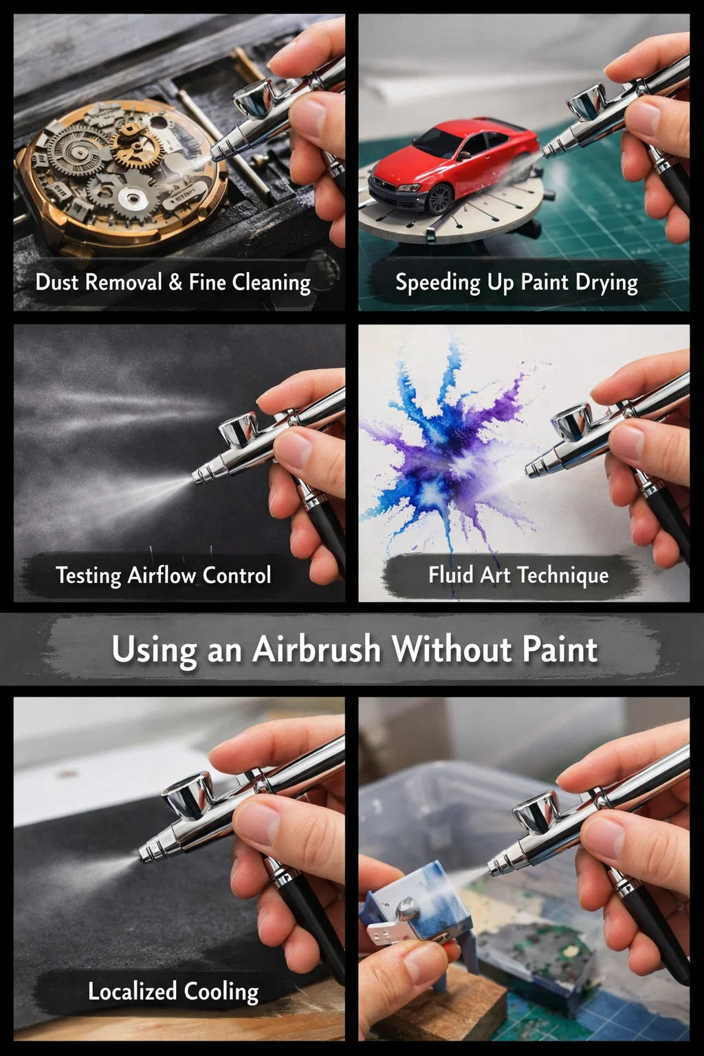 Here are some common uses of an airbrush without paint: