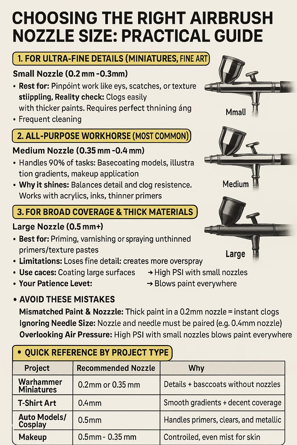 تحتاج الدهانات السميكة (البرايمر والمعادن) إلى فوهات أكبر.